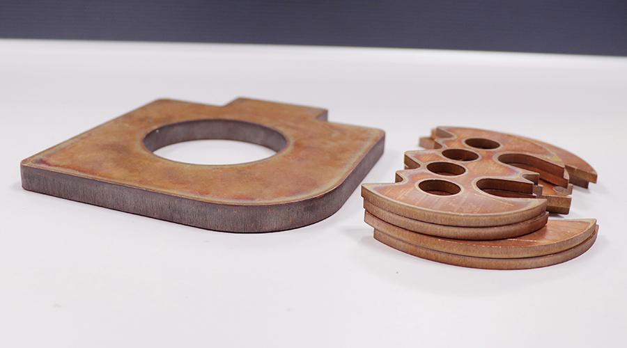 由于紫铜具有良好的导热性,在切割过程中材料的边缘会产生严重的热影响区。为了减少切割的热影响痕迹,通常会采用空气进行切割,但其切割效率低且切割断面粗糙。为了解决紫铜的切割质量和效率问题大科激光改用氧气切割,不仅切割效率提升了200%,而且切割断面光滑;同时,通过改变激光器的出光模式,可以明显的减少切割边缘的热影响区。目前,大科激光2kW抗高反型单模单谐振腔光纤激光器可以实现不锈钢、铝合金、黄铜的最大切割厚度为10mm,紫铜的最大切割厚度为6 mm,也是唯一能实现4mm紫铜连续长时间无报警高质量切割,切割边缘无明显热影响痕迹的激光器。DK-YSM2000AR单模抗高反连续光纤激光器可兼顾薄板的高速切割与中厚板的亮面切割,实测薄板切割能力明显优于3000W多模产品,并可实现长时间无误警连续切割高反射金属材料。